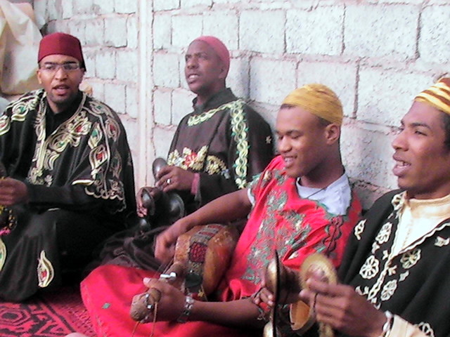 GNAWA MUSIC eine Mischung aus religiösen LIdern und Rhythmen der Afrikaner, Berber und Araber. Es kombiniert Musik mit akrobatischem Tanz und is sowohl eine Art Gebet als auch ein Tanz und Festtagsmusik. In Marrakesh hat diese wichtige Musik einen fruchbaren Boden gefunden um in der Stadt der sieben Heiligen aufzublühn.