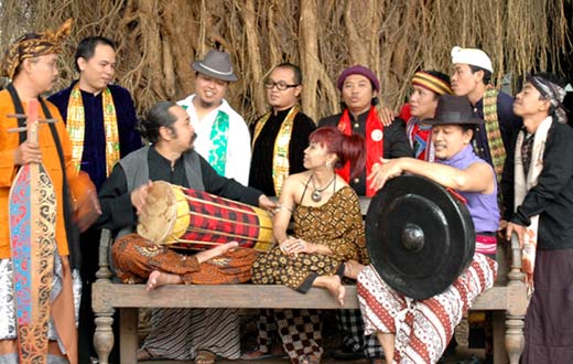Balinesische, Javanesische, Jazz, Reggae und viele andere Einflüße treffen sich beim derzeit berühmtesten GAMELAN ENSEMBLE Indonesiens, bei KUA ETNIKA. Der volle Bigbandsound wir bestimmt von komplexen Rhythmen und bedient sich sowohl der Tradition als auch der Neuen Musik. Aufwändige Interpretationen von Stücken aus den Osten und Westen sind in ihrem Programm , wiewohl ihr Spiel immer sehr nuancenreich bleibt und durchdrungen wird von der Kraft aus ihrer Quelle der Tradition. Kua Etnika sind eine interdisziplinäre Künstlergemeinschaft, die 1995 gegründet wurde. Ziel ist die Pflege der Interaktion zwischen Musik, Poesie und Schauspiel. Die Kunst von Kua Etnika fußt in sehr alten Rhythmen, dem Glauben an Intuition und der Lust Traditionelles mit moderem Aroma zu versetzen. Kua Etnika fusionieren Ethnisches mit Elekrischem, vermählen traditionelle Keroncong Musik mit Elementen aus Jazz, Blues, Rock, Country und Dangdut. Durch sie ist die traditionelle Musik Indonesiens wieder ins Zentrum des Interesses der Jugend gerückt. Ihr wunderbares Klanghybrid nennen sie “Indonesian Harmony”. Eindrucksvoll nachzuhören auf ihrem Album “Pata Java”. Arrangiert wird die Musik von Kua Etnika von Djaduk Ferianto, einem erfahrenen Filmkomponisten.